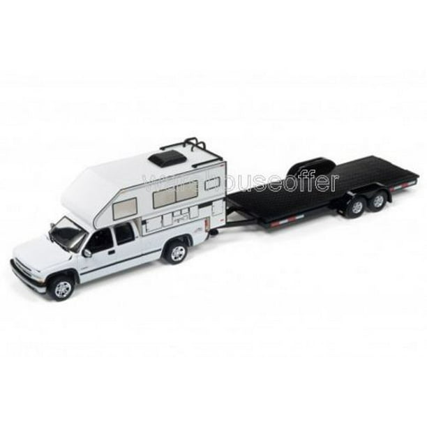 Johnny Lightning 1 64 Truck Trailer 2002 Chevrolet Truck Camper White Flatbed Trailer Black Jlcp7087 Walmart Com