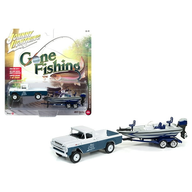 1959 Ford F 250 Pickup Truck Surf Blue Iridescent White W Boat Trailer Gone Fishing 1 64 Diecast Johnny Lightning Walmart Com